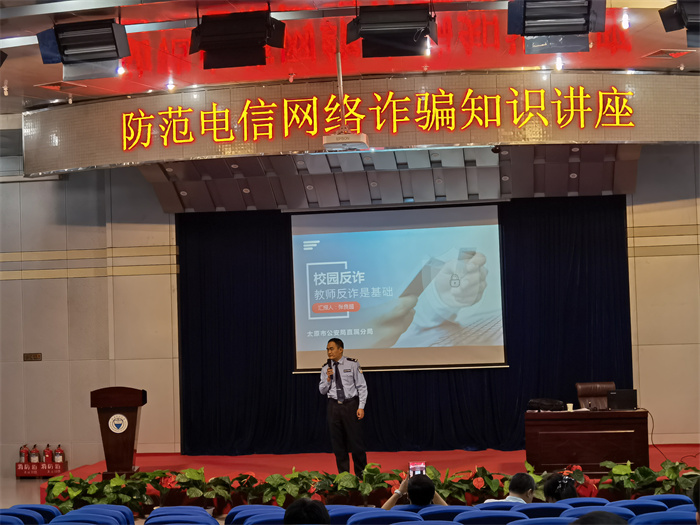 6月14日下午,保卫处邀请太原市公安局反诈讲师、太原市公安局直属分局反诈专班负责人张良超警官、太原市直属分局刑侦大队刘萌警官,在迎西校区思贤楼会议室组织开展 “防网络电信诈骗”“校园禁毒”“消防消防安全”三场专题讲座,浦京辅导员及学生代表200余人参加。张良超警官结合近年来各类贷款真实案例,向师生介绍了什么是校园贷、套路贷,解析了各类非法贷款的危害,并宣传普及了金融基础知识和金融诈骗的防范手段。刘萌警官向师生讲述了毒品的种类和危害性。关宏战副处长向师生宣讲了消防安全知识和应急逃生常识。通过此次系列安全专题讲座,进一步强化了师生安全意识和自我保护意识,有利于防范和化解师生关于禁毒、违法借贷、消防安全等安全风险。