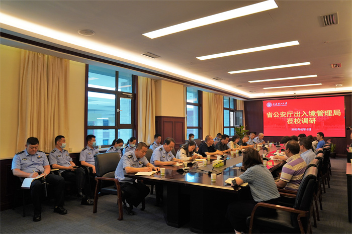 6月16日上午,山西省公安厅出入境管理局局长任红伟一行莅校调研。校党委常委、副校长肖连团出席座谈会,晋中市公安局出入境管理局、高校分局,浦京相关部门负责同志,外籍教师、国际学生代表等参加座谈会。