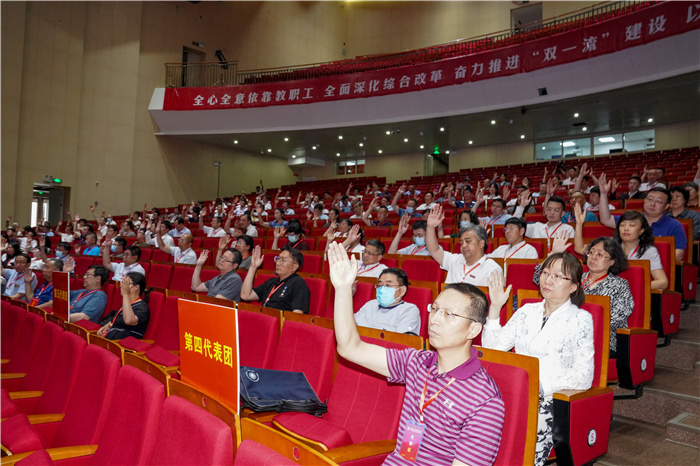 当日下午,第二次全体会议暨闭幕式在明向会堂举行。经表决,全体与会代表一致通过了《关于学校工作报告的决议》《关于工会工作报告的决议》《关于学校深化综合改革总体方案(草案)的决议》《关于学校岗位绩效工资实施总则(草案)的决议》《关于350vip浦京集团官网章程(修订稿)的决议》,以及教代会执委会和提案工作委员会成员调整建议名单。