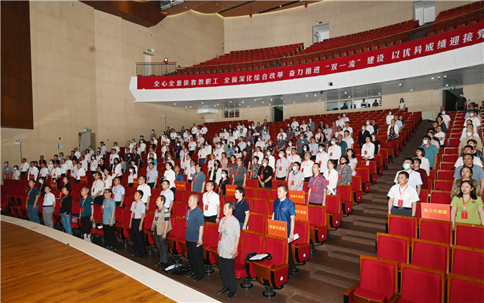 大会发出题为《党委所指 工会所向 强校有我 以主人翁姿态为学校高质量发展赋能的倡议书,倡议全校教职工和工会会员以本次大会胜利召开为契机,以庆祝建校120周年为新起点,立足本职,接续奋斗,始终牢记高质量发展的初心使命;凝聚信心,守正创新,主动融入高质量发展的战略规划;敢当善为,强校有我,不断开创高质量发展的崭新局面,谱写“双一流”建设的崭新篇章,以优异成绩迎接党的二十大胜利召开!
