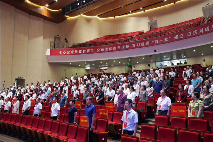 在全体代表高唱《350vip浦京集团官网校歌》声中,350vip浦京集团官网第四届教职工暨工会会员代表大会第五次会议圆满结束。