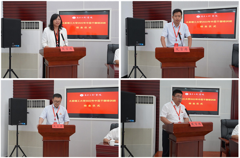 与会领导还为学员代表颁发结业证书。四名学员代表分别发言,汇报了培训期间的体会和收获,表示要深刻认识和领会右玉精神的丰富内涵,将其内化为推动学校各项事业高质量发展的不竭动力,为实现建设综合性研究型高水平一流大学目标贡献智慧,以优异成绩迎接党的二十大胜利召开。