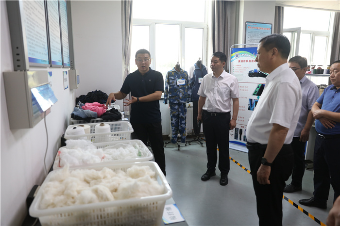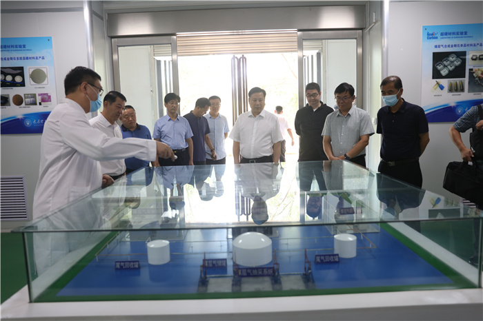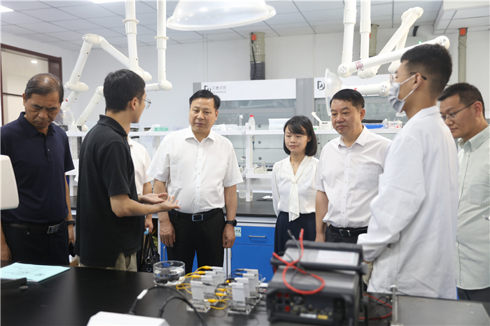 座谈会前,丁思彬一行还赴超硬材料实验室、纺织行业废旧涤棉纺织品清洁再生重点实验室、高分子材料实验室、图书馆等地参观调研。