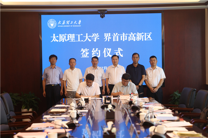 浦京国内合作处负责人和界首市人大常委会副主任、高新区管委会副主任刘涛代表双方签署战略合作协议。