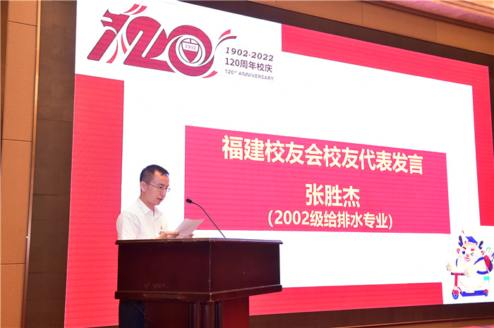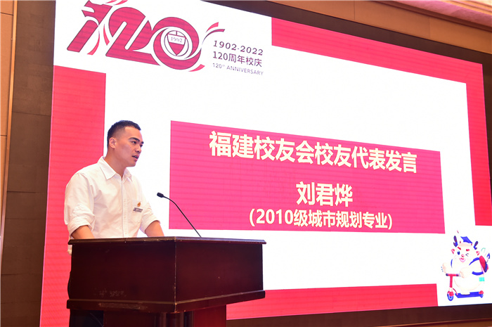 2002级校友张胜杰和2010级校友刘君烨作为优秀青年代表,在发言中表达了对母校的感恩、怀念和祝福,表示会在会长的带领下,共同努力,打造具有福建特色的校友文化,不辜负母校和广大校友的厚望与重托。