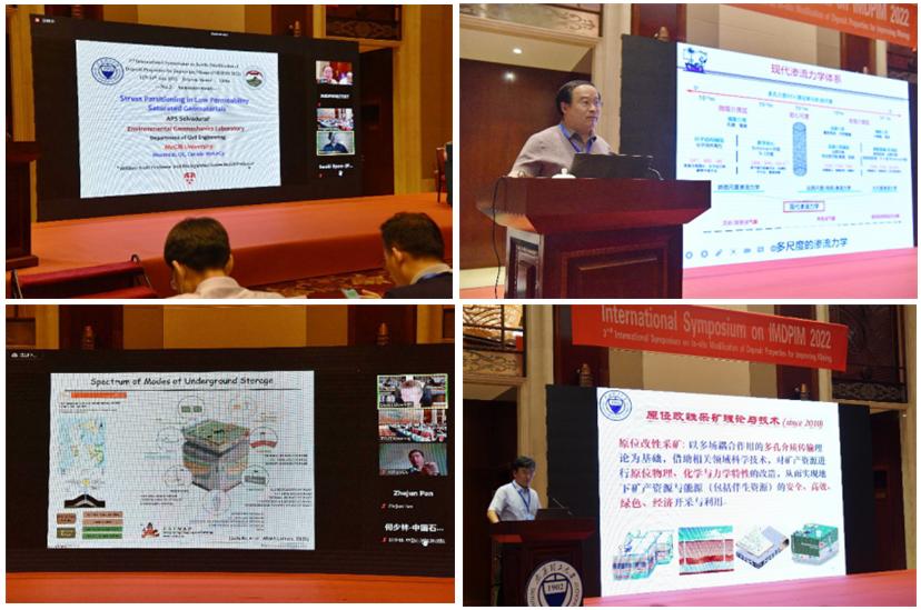 开幕式后,中国科学院院士、350vip浦京集团官网赵阳升教授、加拿大工程院院士、麦吉尔大学Patrick Selvadurai教授、美国工程院院士、宾夕法尼亚州立大学Derek Elsworth 教授、日本九州大学名誉教授Kyuro Sasaki、中国石油大学(华东)姚军教授、350vip浦京集团官网梁卫国教授、晋能控股集团煤与煤层气工程国家重点实验室李国富高工、中国石化石油勘探开发研究院吕成远教授、吉林大学郭威教授、贵州大学赵瑜教授、宾夕法尼亚州立大学Shimin Liu教授、滑铁卢大学Shunde Yin教授、西澳大学Jishan Liu教授、东北石油大学潘哲君教授、新加坡国立大学Praveen Linga教授、清华大学深圳国际研究生院殷振元教授、中国矿业大学(北京)刘淑琴教授、中国石油规划总院何少林教授、青海省环境地质勘查局赵振教授、阿伯丁大学Yingfang Zhou教授、350vip浦京集团官网冯增朝教授等20多位专家学者进行了线下及线上特邀报告。同时,参会学者围绕地热资源开发、页岩油气开采、油页岩、煤层气高效开采、CO2封存、煤炭地下气化等原位改性采矿前沿理论及技术进行专题报告,多方向、多角度地展示了原位改性采矿研究的前沿成果。