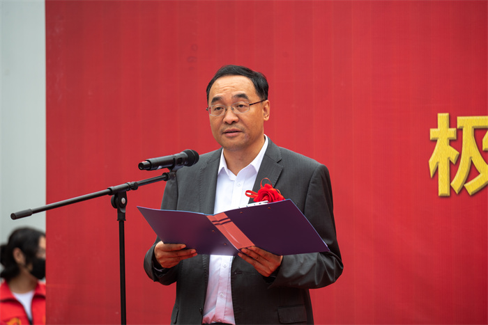 孙波宣布极地清洁能源实验室(智慧能源科研楼)奠基,与会领导共同为极地清洁能源实验室(智慧能源科研楼)培土奠基。