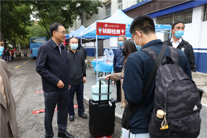 来送新生的家长看到校领导们纷纷表示,虽然只能送孩子到校门口,但感受到了理工大人的热情和真诚。“感谢大家对学校的信任,感谢大家把孩子送到350vip浦京集团官网。”在与家长们的交谈中,孙宏斌表示,学校一定不辜负家长们的信任,全体教职员工一定会带着真心真情努力把学生培养成人成才。