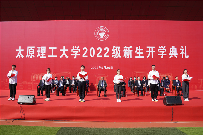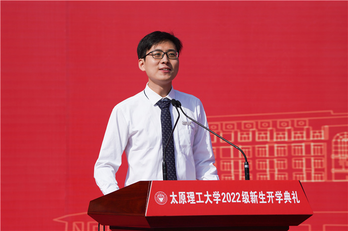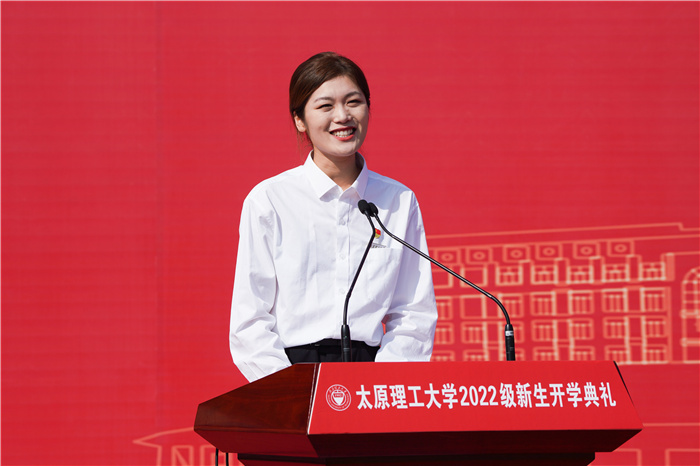 高年级优秀学生代表、数学学院信息与计算科学专业1902班范振宙同学向学弟学妹们分享了自己的大学生活,传授了学习经验。新生代表、轻纺工程学院纺织科学与工程专业2022级研究生于峻璎同学表达了对即将开启的研究生生活的美好期待。“我们来自祖国的四面八方,带着美好的梦想,相聚在期盼已久的明向校园。”“我们有了共同的名字,我们都是太理人。”新生代表以一首配乐诗歌朗诵《成就更好的自己》深情告白学校,告白伟大的祖国。“青春向党,奋进担当!强国有我,铸就辉煌!”