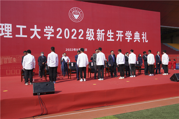 校领导孙宏斌、李晋平、刘润祥、尉安英、吴斗庆、张献明、肖连团、任喜莹出席典礼。学校各职能处室负责人、各学院负责人、新生辅导员、新生代表等在现场参加了典礼。典礼由校党委副书记刘润祥主持。根据疫情防控要求,今年的开学典礼采取线下线上同步进行,8000余名新同学和数万名新生家长守候在线上,通过收看网络直播的形式共同见证新一代理工学子迎来启航人生的重要时刻。