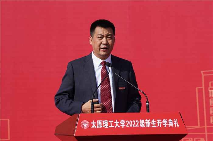 校党委副书记、副校长(主持行政工作)孙宏斌代表在外学习的校党委书记郑强、代表全校师生向2022级新同学表示衷心的祝贺和热烈的欢迎,并与大家一起用最热烈的掌声,对长期以来悉心培育同学们的家长们和老师们表达了最诚挚的感谢感恩。