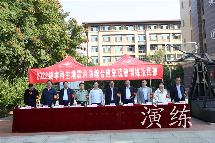 为进一步强化学校的安全管理,提升学校在面对地震、火灾等突发事件时的综合应急处置能力,提高全校师生的安全意识,切实加强2022级本科生应对地震、火灾等突发灾害事件的避险逃生、自救互救等技能,熟悉紧急疏散的程序和路线,9月28日上午,学校在明向校区组织2022级本科新生开展了地震消防综合应急疏散演练。演练由校党委副书记刘润祥担任总指挥,各相关部门(单位)作为指挥部成员参与指挥、协调演练工作。晋中市大学城产业园消防援救大队参谋刘敏出席演练活动。明向校区2022级8000余名本科生参加了此次演练。