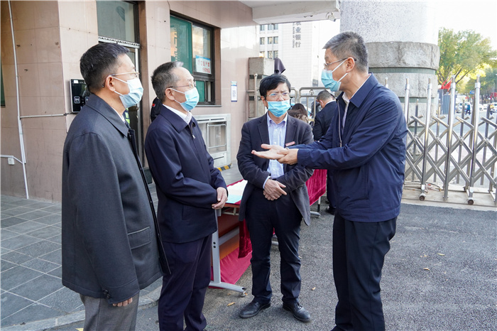 进入迎西校区南门,张复明一行首先在校园门岗处仔细查看人员出入登记、体温检测以及日常消杀等情况,并听取了学校相关负责人关于疫情防控、防疫物资保障等方面工作的汇报。他对浦京近年来疫情防控工作采取的举措、取得的成效给予充分肯定,并强调要进一步压实主体责任,强化闭环管理,把好门、管好人、控好物、备好勤,严守校门安全关,筑牢校园安全屏障,及时回应师生关切,保障广大师生身体健康和生命安全,维护社会大局稳定。