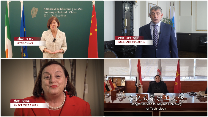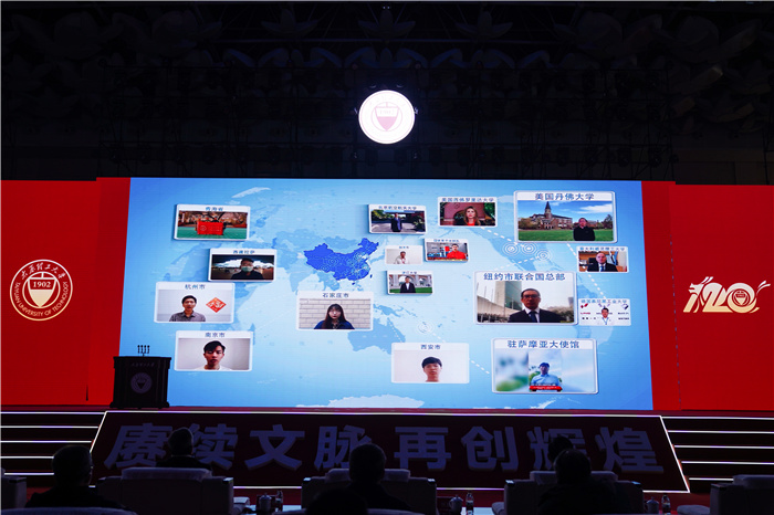 山水相连,天涯比邻。爱尔兰驻华大使安黛文,俄罗斯乌拉尔联邦大学校长科克沙洛夫,澳大利亚伍伦贡大学校长戴维森,埃及中国大学董事长卡里姆,中国科学院院士、中国科学技术大学校长包信和,西安交通大学校长王树国,中国工程院院士、华中科技大学党委书记李元元,中国工程院院士、四川大学校长李言荣,中国科学院院士、兰州大学校长严纯华,中国工程院院士、北京理工大学党委书记张军,中国工程院院士、大连理工大学校长郭东明,中国工程院院士、华南理工大学校长张立群,中国工程院院士、中国高等教育学会副会长、河南省政协副主席、郑州大学党委书记刘炯天发来视频致辞,对学校120周年校庆表示祝贺。