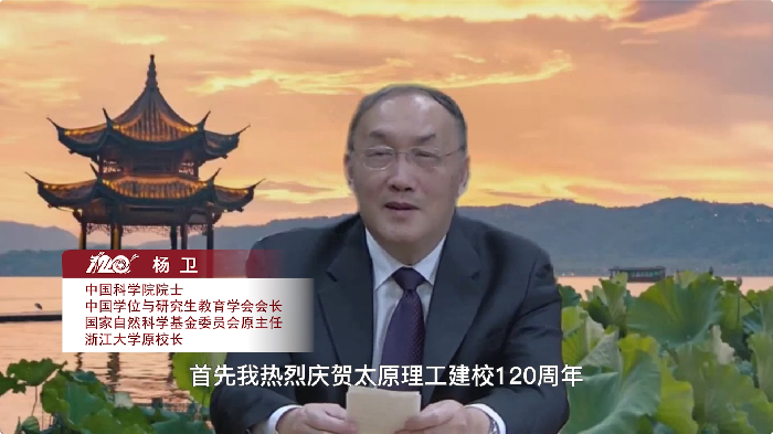 中国工程院院士、教育部科学技术委员会主任委员、四川大学原校长谢和平在视频中向学校全体师生员工和海内外校友致以热烈的祝贺和美好的祝愿。他表示,120年来,学校秉承“求实、创新”的校训精神,爱国奉献、兴教图强、成绩斐然,特别是近年来,在新一届校班子的引领下,学校胸怀国之大者,以“敢为人先、敢于竞争、勇于创新”的气魄,走出了一条高水平特色化办学之路,彰显了服务国家和区域重大战略的“双一流”大学的责任与担当。他希望学校以120周年校庆为新起点,守正创新,追求卓越,在建设教育强国、科技强国、人才强国的新征程上再铸辉煌,早日建成综合性研究型高水平一流大学,为中华民族伟大复兴作出新的更大贡献。