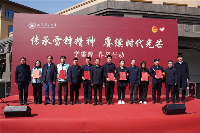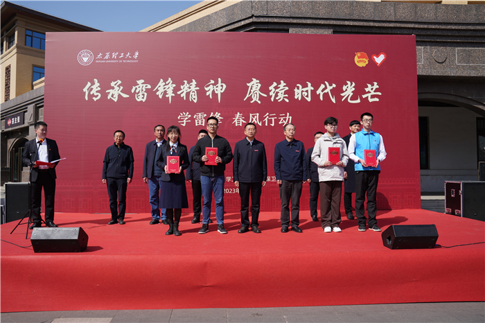 启动仪式上,肖连团、任喜莹为荣获山西省2022年度学雷锋服务“最美志愿者”称号的生物医学工程学院高峰同学,荣获“最佳志愿服务组织”称号的研究生支教团,荣获“最佳志愿服务项目”称号的土木工程学院,荣获“志愿服务先进工作者”的校团委老师任荣及荣获学校后勤系统“最美雷锋人”获奖代表物业服务中心职工毛震、耿嘉明、侯佳宇、沈家兴,“最美志愿者”获奖代表软件学院杨亚杰、数学学院蔡毅、软件学院张泽,“最美劳动者”马克思主义学院李槁钰、范潇文,软件学院师磊磊等师生颁奖,向默默无闻践行雷锋精神的师生员工们致敬。