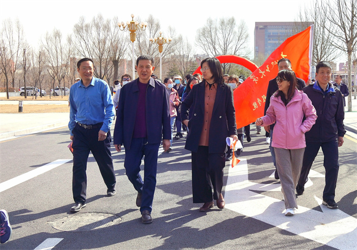 最是一年春好处,健步奋进正当时,在第113个“三八”国际妇女节来临之际,3月7日下午,校工会组织开展了以“礼赞二十大 踔厉启新程”为主题的女教职工环校健步走活动。校党委副书记刘润祥出席活动并致辞。相关单位负责人、各基层单位工会负责人参加活动,表达了对全体女教职工节日的慰问和祝福。来自全校37个基层工会的1000余名女教职工,信步明向,环走校园,共同度过这个健康快乐的节日。