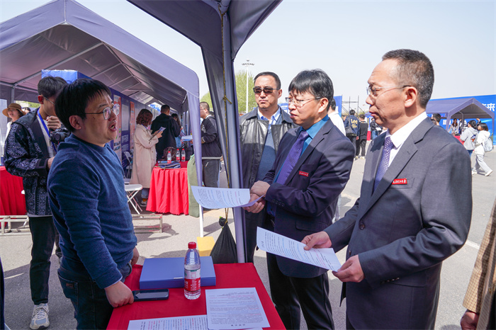 4月9日,春光明媚,绿意盎然。在浦京明向校区南门外广场上,展棚林立,人头攒动。由浦京与晋中学院共同举办的“携手开新局共享赢未来”2023届毕业生春季联合双选会正在进行中,校党委常委、副校长张献明、任喜莹等校领导到双选会现场调研指导,了解学生求职情况和用人单位招聘需求。