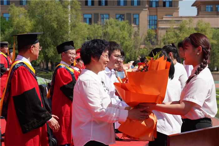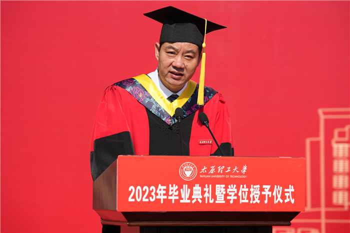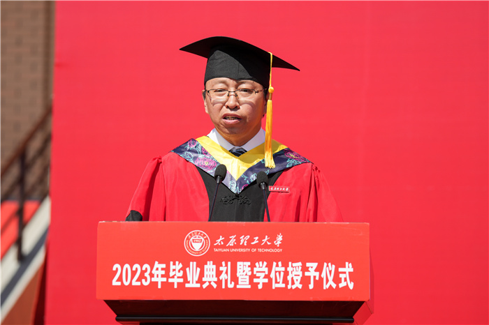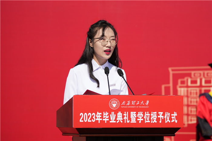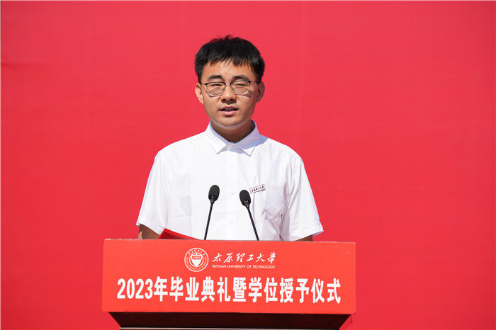 研究生毕业生代表、马克思主义学院樊容,本科毕业生代表、机械与运载工程学院裴智明分别发言,回顾了在校学习生活的美好时光,代表全体毕业生向母校和恩师表达了由衷感谢和诚挚祝福,表示将肩负重任、担当使命,为国家高水平科技自立自强贡献青春力量,在广阔天地间将“求实、创新”的校训发扬光大、将“敢为人先、敢于竞争、勇于创新”的精神气质赓续绵延。