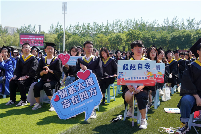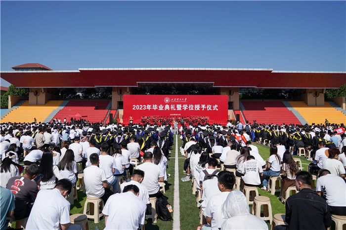 “我们终将再分离,而我的自传里曾经有你,没有遗憾的诗句,诗句里充满感激……”扬帆起航自奋楫,逐梦成长向未来。又是一年毕业季,6月13日上午,浦京2023年毕业典礼暨学位授予仪式在明向校区东田径场举行,典礼前,毕业生们用歌声深情表达对母校的不舍以及对新征程的憧憬。校党委书记郑强,校党委副书记、副校长(主持行政工作)孙宏斌,中国工程院院士金智新,中国科学院院士赵阳升,校党委副书记刘润祥,校党委常委、副校长吴斗庆、张献明、肖连团出席毕业典礼,各学院分学位委员会主席、各学院党委书记、各职能部门(单位)负责人、学校服务单位代表,3000余名2023届毕业生代表和部分教师代表等参加毕业典礼。刘润祥、肖连团分别主持毕业典礼和学位授予仪式。