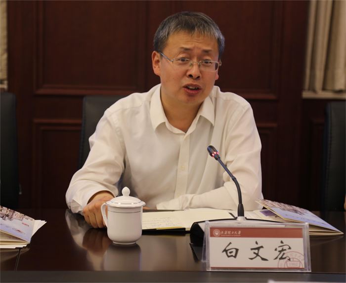 白文宏高度赞扬了学校近年来的建设和发展,特别是在毕业典礼致敬安保人员、智慧化平台建设等方面的创新举措,并介绍了山西师范大学的具体情况。他提出,作为高校安全管理人,我们要从维护国家安全和社会稳定的大局出发,要有高度的政治责任感,强烈的使命感,做到“守土有责、守土尽责”,确保校园安全稳定。希望能以此次调研学习为契机,进一步深化友谊,加强合作。