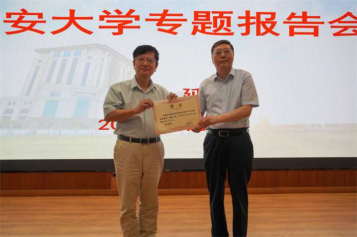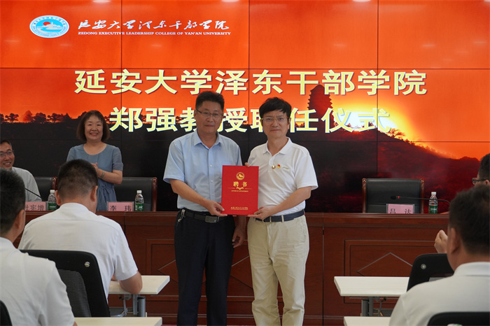 在延安大学期间,郑强受聘担任延安大学“兼职教授”、延安大学泽东干部学院“特聘教授”。张金锁、吕达分别向郑强教授颁发聘书并赠送《毛泽东选集》《平凡的世界》《路遥传》等书籍。郑强表示,很荣幸成为延安大学、成为延安大学泽东干部学院的一员,这是一所具有光荣革命传统的大学,今后一定不负重托、不负期待,为延安大学、延安大学干部学院的建设发展尽心竭力、做好参谋、贡献力量。