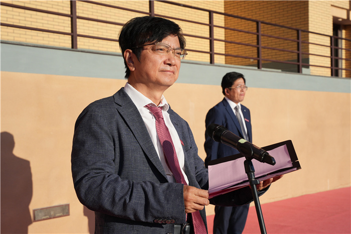 校党委书记郑强在明向校区参加升国旗仪式并讲话。他代表学校向全校师生员工致以新学年的美好祝愿,向暑期坚守岗位的教职员工致以崇高的敬意,向返校归来的全体同学表示亲切的问候。他指出,2022-2023学年是不平凡的一年,全体理工大人凝神聚气、攻坚克难,在疫情反复延宕的艰难情况下,全面统筹“双一流”建设,一以贯之推进深化重点领域改革,推动办学质量和整体实力高水平提升,在奋勇迈向综合性研究型高水平一流大学的征途中不断呈现出朝气蓬勃、昂扬向上的全新气象。新的学年,全校上下正以前所未有的魄力和豪情,深入推进新一轮“双一流”建设,奋勇开启学校“两步走战略,为实现中华民族伟大复兴贡献“理工力量”。郑强希望全校师生员工以更加饱满的热情投入到新学年新学期的学习、工作和生活中,勇于拼搏奋斗,不断砥砺前行,确保学校各项目标任务如期实现。