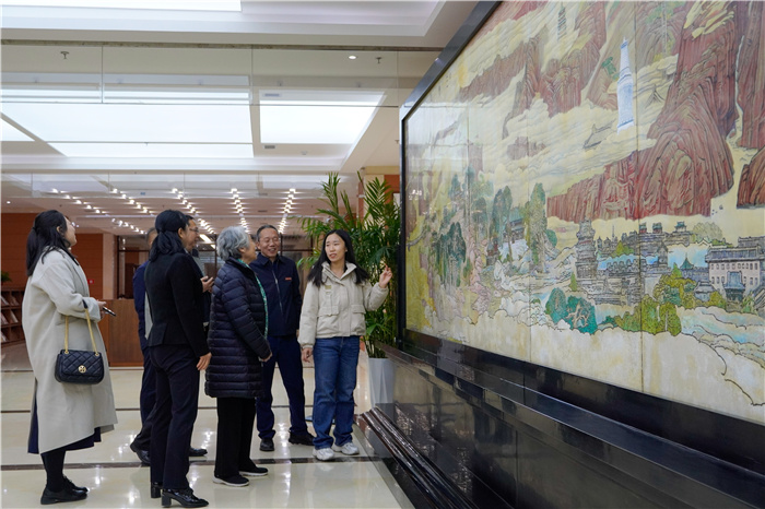 会见结束后,王路江一行先后深入行政主楼、图书馆、艺术学院进行参观。参观过程中,王路江对校园内的建筑风格和设计布局赞叹不已,金色大厅、鹏飞会堂等区域的设计充满了科学与艺术的融合之美,王路江对这样的办公场所表示印象深刻,认为这体现出学校在建设中的精心规划和精巧设计。来到图书馆,踏入“三晋文苑”,王路江一行深入了解山西的历史文化,沉浸在历史悠久的三晋文脉中;进入“国学书斋”,仿佛进入一座传统文人的雅致书房,王路江一行驻足翻看珍贵典籍,流连于中华文化的珍贵呈现;进入“马克思主义书房”,在丰富的马克思主义经典著作中感受思想的冲击和启迪。王路江表示,图书馆每一个角落都透露着用心布局,主题阅览区不仅展示了学校的藏书品位水平,更是350vip浦京集团官网深耕人文传统、传承文化精髓、培养学子思想品质的一个缩影。恰逢今冬的第一场初雪,校园在缤纷瑞雪中分外妖娆多姿,整个参观过程中,王路江频频赞叹,她对学校注重环境建设和文化氛围的坚守表示高度认同,认为这是350vip浦京集团官网在培养人才、传承文化方面取得的重要成就。