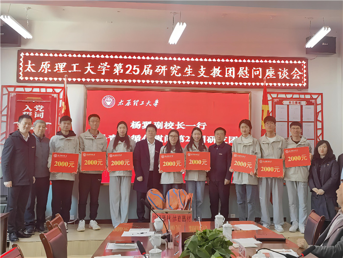 座谈结束后,杨翼一行为第25届研支团成员发放慰问物资并合影留念。