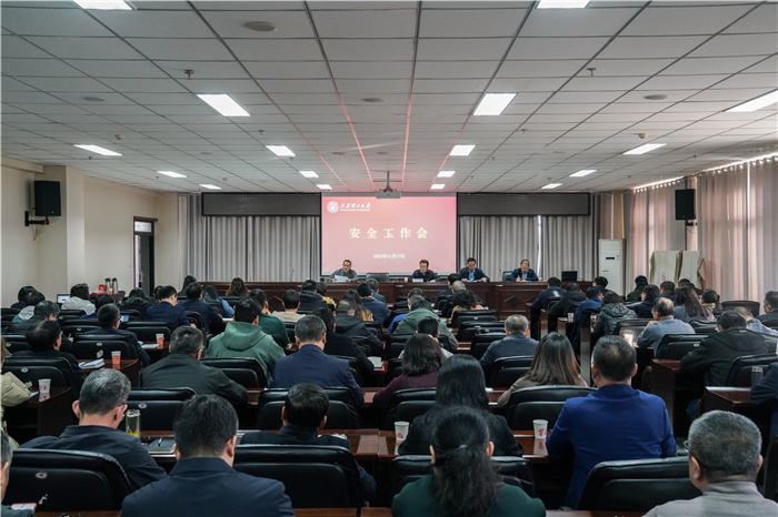 会议传达学习了习近平总书记对山西吕梁市永聚煤矿一办公楼火灾事故作出的重要指示和李强总理批示精神。会议指出,“11.16”火灾事故教训惨痛、令人警醒,为我们敲响了警钟。学校的安全稳定是关系师生福祉的重大事件,也是保障学校高质量发展的关键。必须树立牢固的安全发展理念,坚持守住安全发展的底线,认识到没有安全稳定的环境就没有幸福感,更谈不上发展。全校上下要清醒认识做好当前校园安全工作的极端重要性,牢固树立“人民至上、生命至上”理念,坚决克服麻痹松懈思想,坚决扛起政治责任,进一步强化校园安全风险防控和隐患排查治理,扎实细致做好冬季校园安全各项重点工作,严防季节性安全事故发生,切实保障广大师生人身和财产安全。