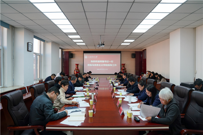 11月17日,校党委书记郑强,校党委副书记刘润祥,校党委常委、副校长任喜莹一行在马克思主义学院调研,并参加集体备课。党办校办、人事处、本科生院、研究生院、科学技术研究院、国有资产管理处等相关部门(单位)负责人参加了调研。刘润祥主持调研座谈会。
