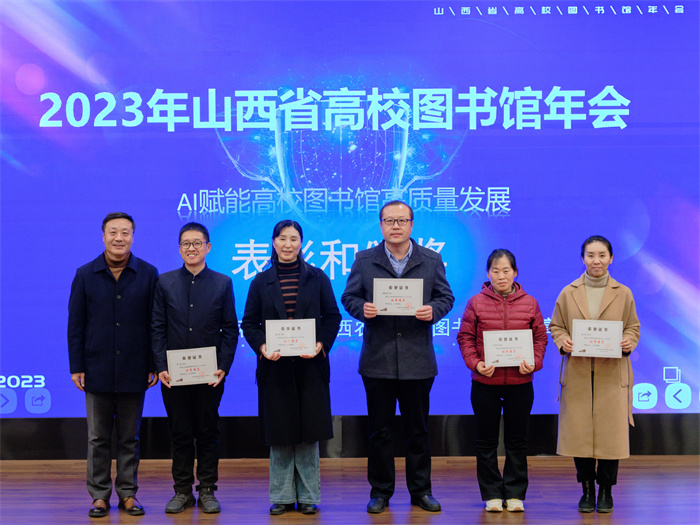 会议为“2021-2022年度优秀馆长和优秀馆员”“2023年‘超星杯’山西省高校大学生书评大赛”“首届‘智信杯’山西省高校信息素养大赛”的获奖者举行了颁奖仪式。浦京图书馆均获得奖项。