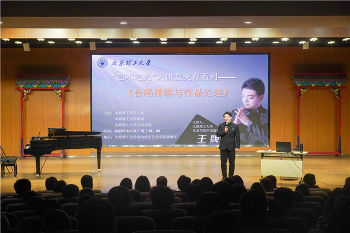 艺馨筑梦奏青春,美育领航启新程。12月5日晚,由校工会、校团委和艺术学院共同主办的“艺术之光”大讲堂美育系列讲座在明向校区艺术学院观摩厅举行。主讲人、浦京艺术学院音乐舞蹈系教师王牌以《合唱排练与作品处理》为题,为在场师生带来一场别开生面的音乐公开课。校党委书记郑强出席活动并讲话,各相关部门(单位)负责人共同聆听了讲座。音乐厅内座无虚席,现场300余名师生徜徉在音符的海洋里,感受着音乐的独特魅力和力量。