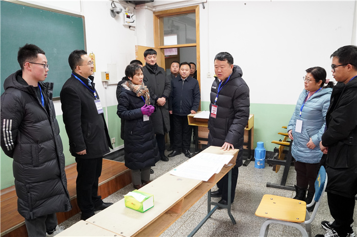 开考后,校党委书记沈兴全深入现场指导工作,并与省派巡视检查组成员亲切交谈,表示学校将严格按照上级部门及相关文件要求,全力以赴做好各项工作,积极稳妥保障本年度浦京研考工作顺利进行。在此期间,沈兴全一行还实地查看考生入场核验卡口、保密室、视频监控室、考场等,听取考点负责人关于考场安排、考试流程、应急处置等情况的汇报,要求切实提高政治站位,严肃考场纪律,严格做好各环节工作,密切关注考生考场需求,扎实做好考试配套服务,把具体举措落实落细。