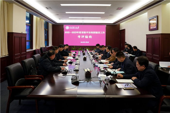 1月5日下午,由中北大学党委常委、副校长来志斌任组长的山西省“平安校园”建设考评验收组莅临浦京,对浦京2022-2023年“平安校园”建设工作进行考评验收。汇报反馈会在明向校区行政主楼南楼312会议室召开,浦京党委常委、副校长李灯熬出席会议,相关部门(单位)负责人参加会议。
