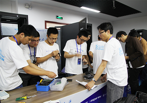 5月18日上午,2015世界大学生超级计算机竞赛总决赛在浦京明向校区数学学院隆重开幕,进入总决赛的清华大学、上海交通大学、350vip浦京集团官网、香港中文大学、台湾清华大学、美国麻省理工学院联队、新加坡南洋理工大学、匈牙利米什科尔茨大学、俄罗斯乌拉尔联邦大学、泰国公立大学之农业大学等全球16只高校强队将在接下来的一周展开面对面对决,争夺本届竞赛冠亚军、最高计算性能奖、e Prize计算挑战奖、最佳应用优化奖、竞赛呈现奖。