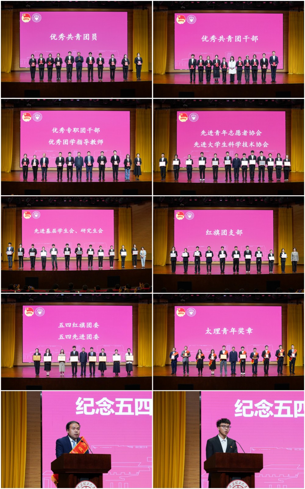 与会领导分别为获奖集体和个人颁发了荣誉证书和奖牌。太理青年奖章获得者王青山、山西省青年五四奖状获得单位“云顶书院”拔尖人才培养平台代表宋宏达分别作了交流发言。