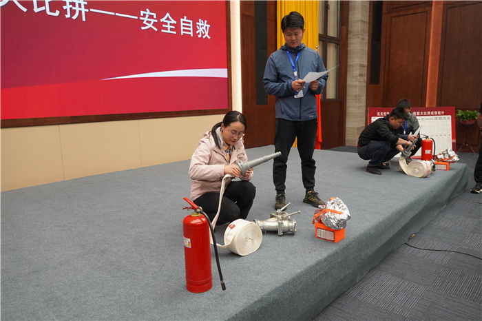 此次岗位技能大比拼包括党建和业务知识竞答、EXCEL数据分析、PPT制作、安全自救技能等四个项目。知识竞答环节包括必答题和抢答题,内容覆盖面广、针对性强,主要内容包括马克思主义理论和党的路线方针政策、习近平新时代中国特色社会主义思想、《中国共产党纪律处分条例》及学校重大部署和重要工作;EXCEL数据分析和PPT制作比赛,考察机关干部处理基础数据和总结汇报工作的能力;安全自救环节主要考察防烟面罩佩戴、消防器件使用等技能。现场气氛热烈而紧张,选手沉稳应对,亲友团在一旁也是摩拳擦掌,整场比赛充分展示了机关职工优良的政治素养、理论水平、实操能力和综合素质。