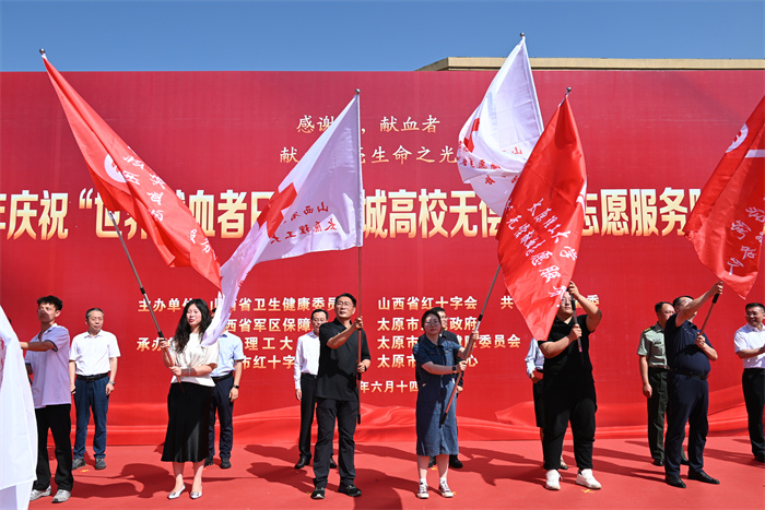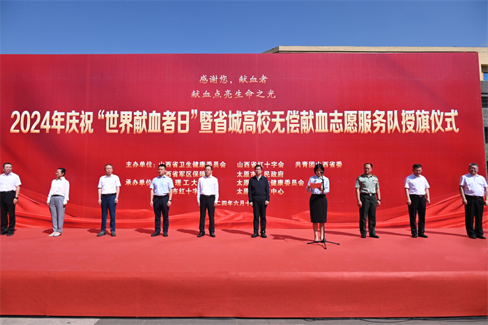 6月14日是第21个世界献血者日,今年恰逢世界献血者日20周年。为感谢献血者的无偿献血行为,弘扬救死扶伤的人道主义精神,6月14日上午,由山西省卫生健康委员会、山西省红十字会、共青团山西省委、山西省军区保障局、太原市人民政府主办,浦京和太原市卫生健康委员会、太原市红十字会、太原市血液中心承办的2024年庆祝“世界献血者日”暨省城高校无偿献血志愿服务队授旗仪式在浦京明向校区举行。