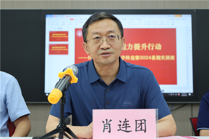 肖连团代表学校向参加本次暑期实训的同学们表示热烈的欢迎和诚挚的祝贺,向为本次实训班筹备和组织付出辛勤努力的各位老师和工作人员表示由衷的感谢。他指出,创新实战能力提升行动是学校创新创业教育改革重点举措,旨在深入推进产教融合融入创新人才培养全过程。围绕学生创新实践能力培养目标,将体现前沿性和时代性的新知识、新技术、新工艺融入教学实践,通过实施项目化、挑战式教学,有效培养学生的自主实践、跨界实践和创新实践能力,在解决真问题、真解决问题过程中产生真成果,提升创新人才培养质量。通过创新实战能力提升行动,促进教师紧密结合时代特征和实际需求,优化教学内容和手段,开展具有高阶性、创新性、挑战度的教学创新改革;促进学生学以致用和创新志趣的激发,增强学习实践获得感,培养敢闯会创的精神品格。他要求,各位授课专家要以教学效果为重、实训同学要实现能力提升、组织管理要高点定位,切实提升创新实战训练效果。