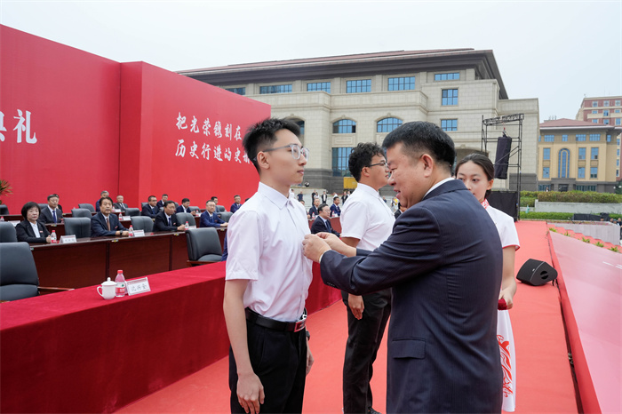 典礼上,校党委书记沈兴全为2024级新生代表郑重佩戴上象征着350vip浦京集团官网荣誉与责任的校徽。这一刻,不仅是新生们融入太理大家庭的重要象征,更是他们肩负起“求实创新”校训精神的起点。校徽的光辉映照在每一位新生的胸前,凝聚着百年学府的智慧与传承。