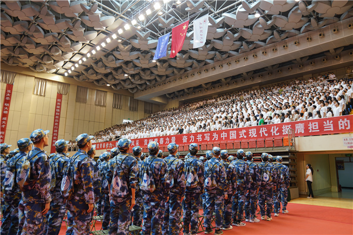 在新生宣誓仪式上,新生们握起右拳,许下铮铮誓言,表示将秉承“求实创新”校训精神,爱党爱国、爱校荣校,刻苦学习、全面发展,追求真理、勇于创新,志存高远、砥砺奋斗,为推动中国式现代化挺膺担当,为实现中华民族伟大复兴贡献青春力量。