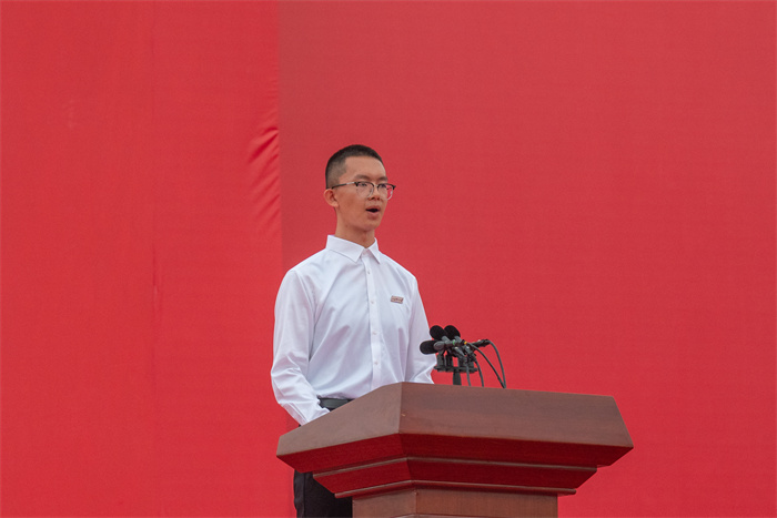 宗复学院生物医学工程S2401班史思博、求实学院化学工程与工艺专业2407班徐雨嫣代表新生发言,表达了对大学生活的期待和对未来的坚定信念。他们号召同学们树立远大理想,以不畏艰难的勇气和拼搏进取的精神迎接大学生活的挑战。志存高远,怀揣家国情怀,坚定理想信念,不断提升专业素养,厚植奋进强国之志。以咬定青山不放松的韧劲,执着追求,奋力拼搏,用奋斗书写属于自己的青春篇章,努力成为高扬旗帜、卓越领航的太理人。