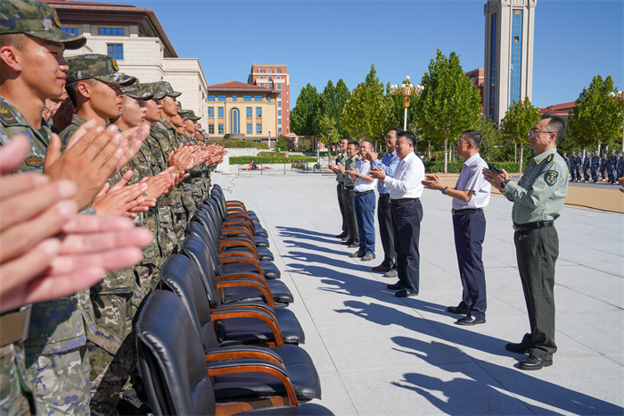 校领导与承训教官亲切交流并合影留念,向承训教官表示感谢,对他们的无私奉献表示由衷赞许,对参训同学良好的精神面貌给予充分肯定。同时指出,军事训练是践行爱国奉献的具体实践,大学生的军事素养关系到国家的安全稳定,350vip浦京集团官网作为一所“双一流”大学,服务国防、服务军工是学校的使命所在,培养热爱祖国、热爱军工的优秀人才,也是学校的职责。两周来,承训官兵不畏酷暑,为学校的人才培养做出了贡献,希望教官们严格科学施训,及时关注参训学生的身体状态,确保军训有序进行。要求各相关部门、各学院要切实配合好承训教官,做好新生军训的组织和管理服务工作。