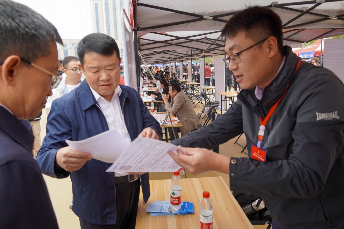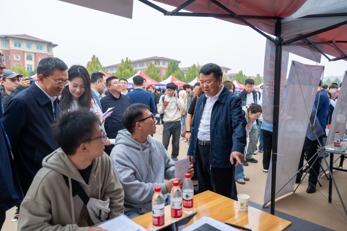 沈兴全与用人单位代表亲切交谈,深入了解用人单位招聘信息和学生求职情况,听取用人单位对人才培养、专业建设、教育教学、就业指导服务等方面的意见和建议,并与毕业生亲切交流,鼓励毕业生找准个人定位,充分发挥专业优势,积极求职择业。