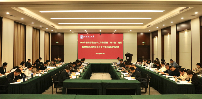 9月29日下午,浦京在迎西校区会议中心一层会议室召开2024年教育事业统计工作部署暨“双一流”建设监测统计及决策支持平台上线启动培训会。校党委书记沈兴全出席会议,党政办、组织部、统战部、发展改革部、人才办(人力资源部)、教务部、研究生院、科研院、财务部、国有资产管理部、继续教育学院、国际教育交流学院(国际合作部)、图书馆等26个单位的部门负责人和统计人员参会。