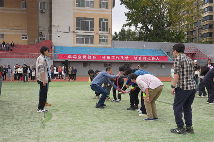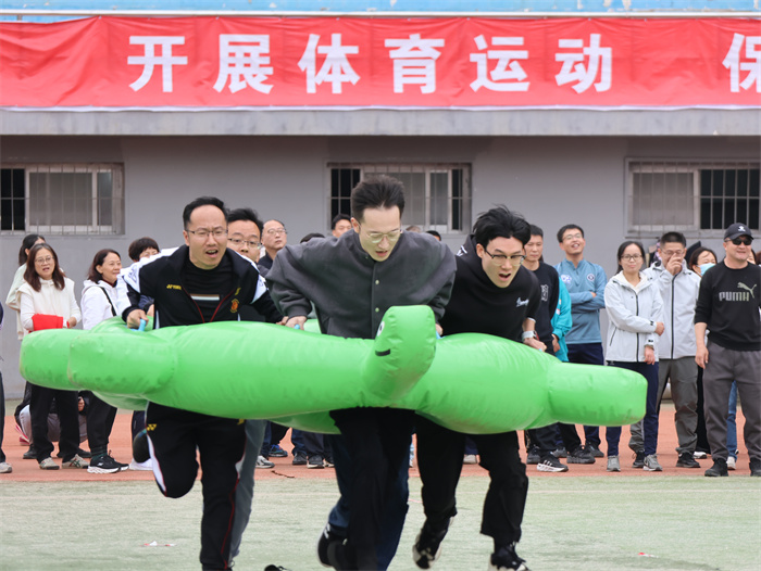 在团体项目的比赛过程中,参赛教职工们默契配合、奋勇争先,趣味项目不仅趣味十足,还考验着每位参赛者的“巧劲儿”以及队员之间的默契配合。“抢种抢收”,不但要抢着“种”,还要抢着“收”,讲速度更讲技巧,老师们矫健的身姿在赛场上不断穿梭,赢得阵阵欢呼声;“旱地龙舟”赛场,一艘艘“龙舟”在绿茵场中穿行,仿佛置身水中奋力向前;鞋大脚小,快乐奔跑,嘻哈大脚项目,穿上搞怪的“大脚鞋”,各参赛队运动员们或小碎步、或大跨步奋力向前迈进;“万众一心”拉近了队员们之间的距离,大家一个个穿过呼啦圈,柔韧有度,稳中求胜;奋勇向前、马甲跑的快、龟兔赛跑……每一个项目,每一场比赛,都充满了欢声笑语,体现着团结协作的精神。大家口令整齐,动作一致,全身心投身到充满趣味和挑战的运动中,场内时时爆发出热烈的欢呼声、加油声。