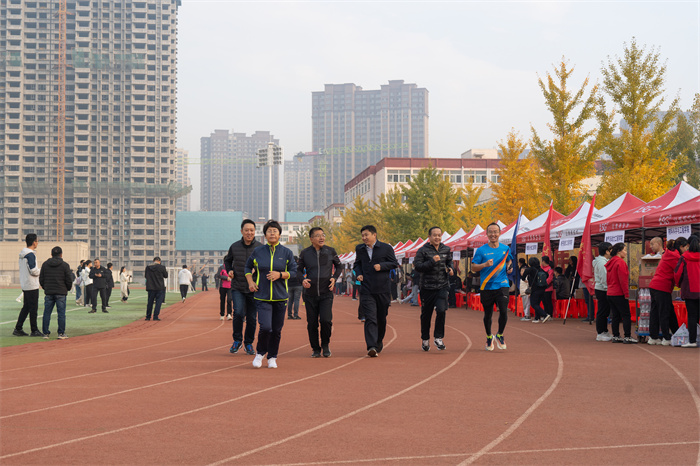 王志华打响发令枪,比赛正式开始。各队队员摩拳擦掌,充分做好热身工作,迅速投入比赛,个人项目迷你马拉松虽然迷你,但对并非专业运动员的老师们来说,也是一次对耐力、毅力和意志的考验,对自我极限的挑战。比赛途中,有的选手奋力奔跑以速度不断挑战自己的运动极限,有的选手轻盈慢跑享受着运动的快乐,大家在比赛中展现着坚韧的毅力,享受着运动的畅快激情,矫健的身影成为一道道靓丽的风景线。