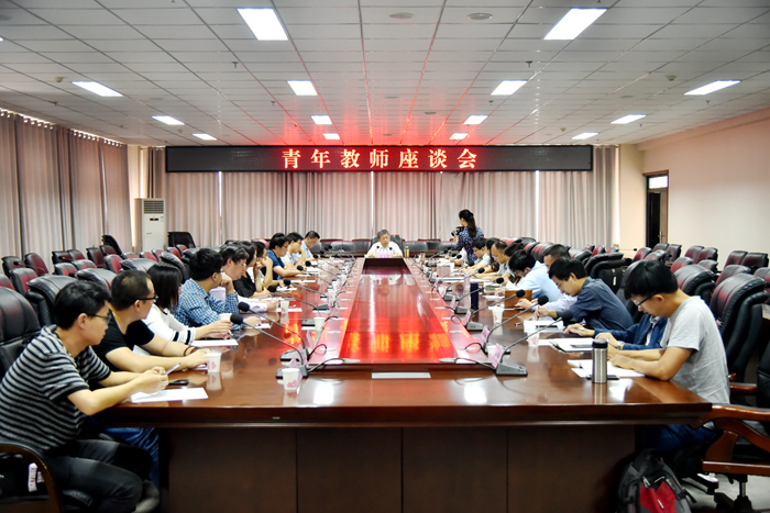 9月10日上午,校党委书记吴玉程与来自各学院的21位青年教师代表在迎西校区逸夫楼六层会议室进行座谈。党委办公室、人事处负责人参加座谈会。