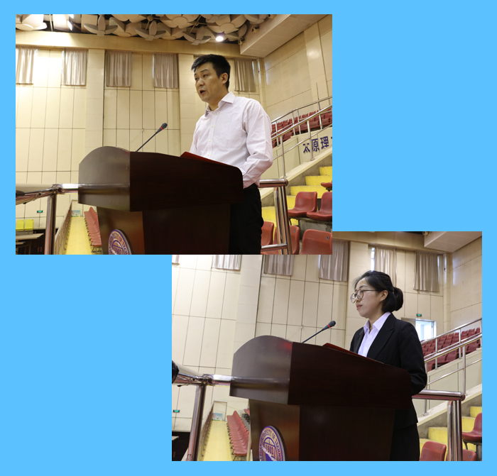 2017级硕士研究生王舒漫代表新生发言,表达了自强不息,追求真理,勇于创新,为母校续写新辉煌的决心。